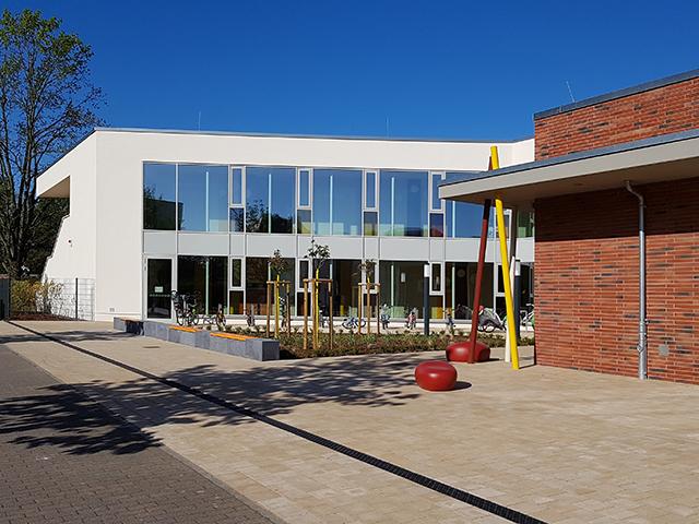 | Planung | Freianlagen für Krippe und Kita, Vorplatz, Ballspielfläche, Rodelberg, Stellplatzanlage |